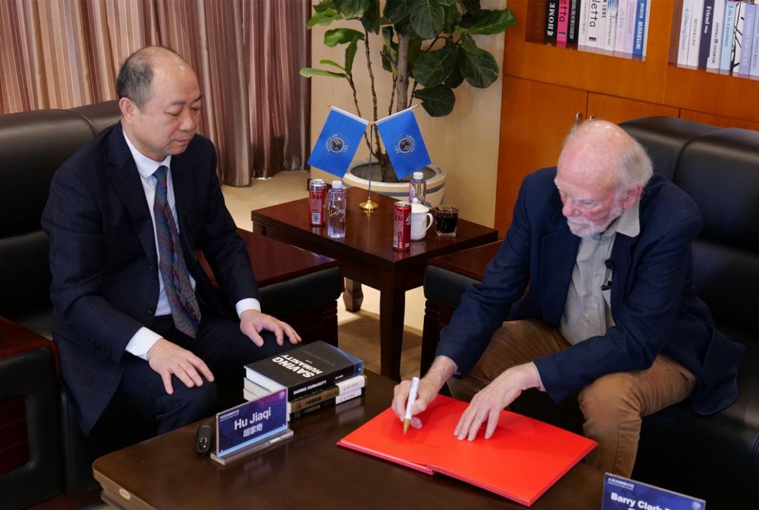 Chairman Hu Jiaqi warmly welcomed Professor Barish and accompanied the distinguished elderly professor, who is over ninety years old, on a tour of the office premises. Subsequently, the two sides held an academic symposium under the theme “Technology and the Future of Humanity,” engaging in two hours of in-depth discussion and exchange on topics such as technological safety and the future development of humanity. They thoroughly exchanged views on various academic issues, demonstrating their shared concern for the destiny of mankind.
